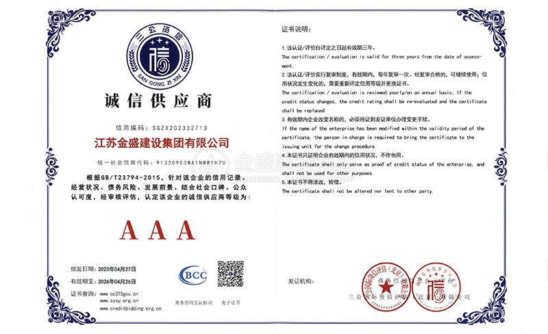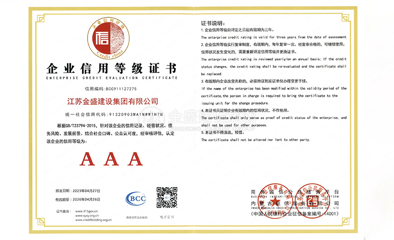 • 企業(yè)信用評(píng)級(jí)證書(shū)
